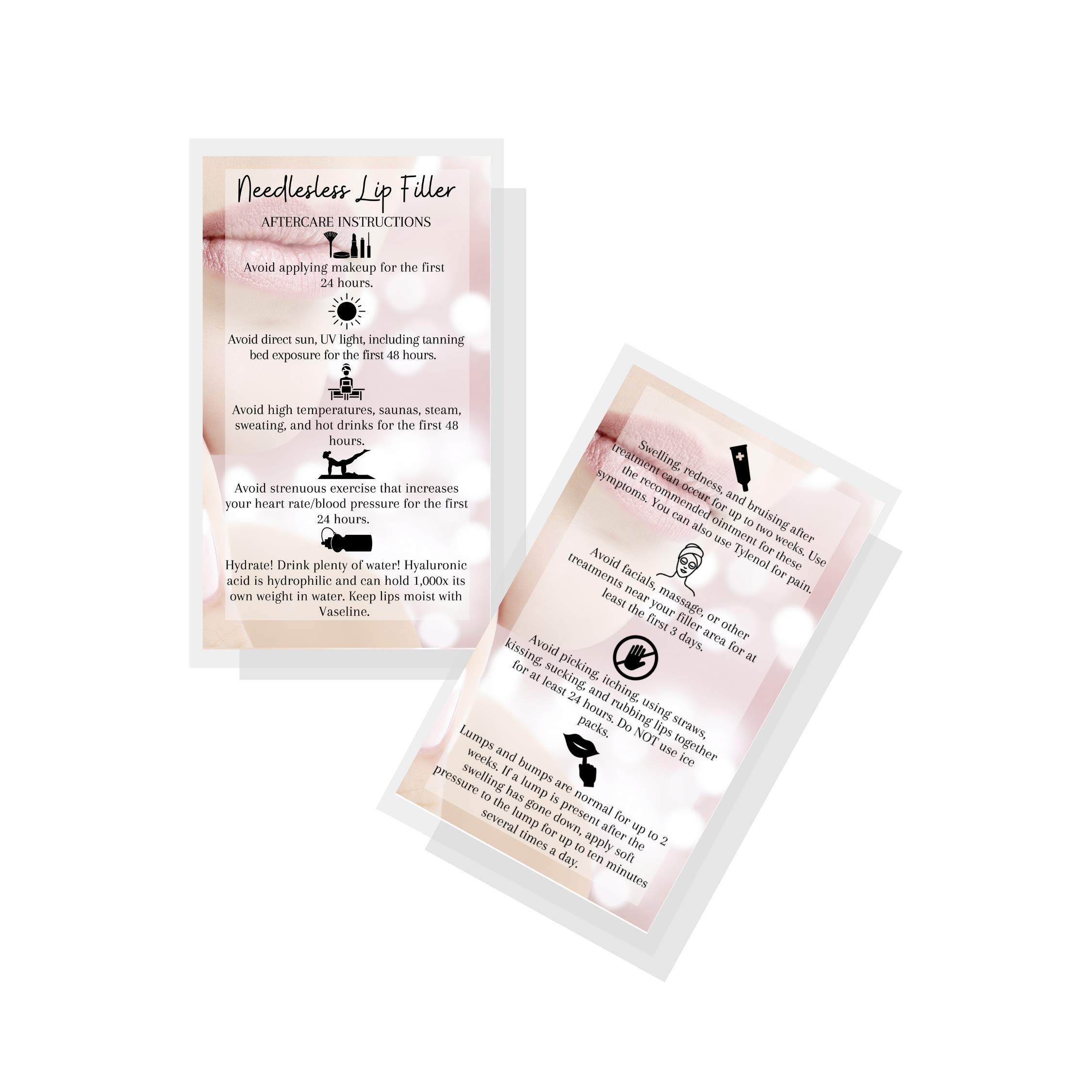Amazon Com Needleless Lip Filler Aftercare Instructions Card 50 Pack Physical Printed 2x3 5 Inches Business Card Size Needlesless Lip Filler Pink With Photo Design Office Products